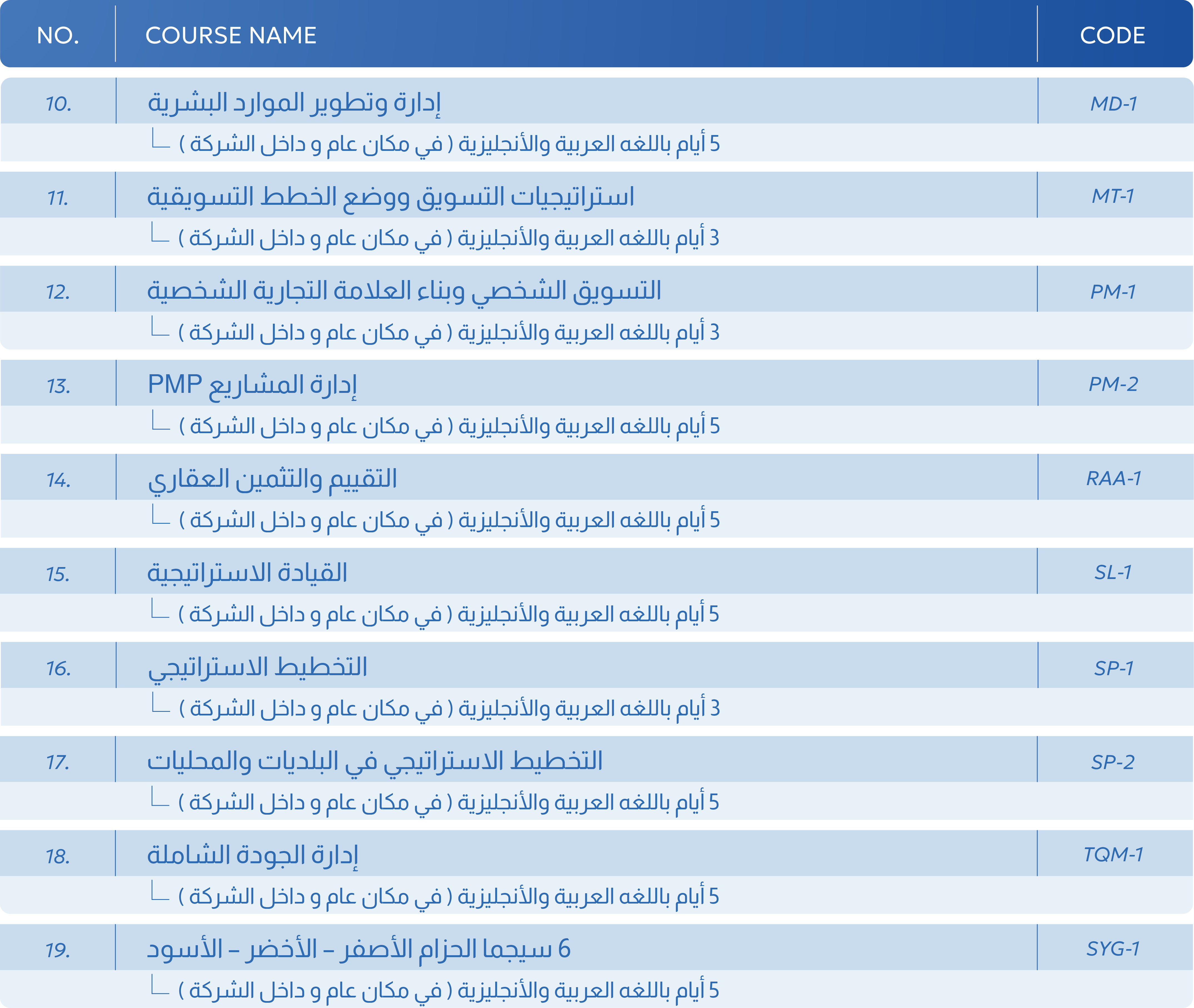 يهدف المركز في مجال الإدارة والتي تتطلب مواجهتها بمهارات وأساليب إدارية حديثة تسهم في نجاح العمل ورفع مستوى الأداء الوظيفي واكساب المتدرب المهارات اللازمة والتي تسهم في التميز الإداري والجودة الشاملة ووضع الاستراتيجيات الإدارية والتسويقية والمهارات القيادية ومؤشرات الأداء إضافة الى مهارات الاتصال والتفاوض والاقناع.